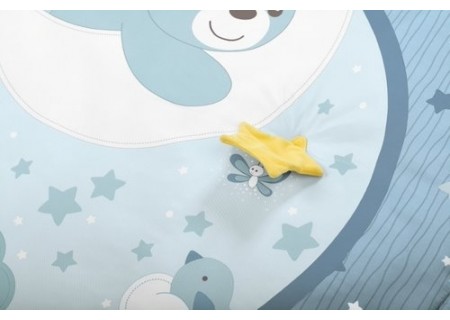 • W zestawie poduszka zapewniająca wsparcie podczas leżenia na brzuszku.