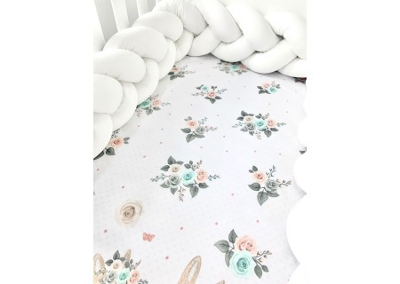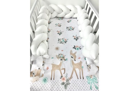 3 el.Pościel do łóżeczka 120x90 3 el.Pościel do łóżeczka 120x90 "Nature&Flowers" (sarenka biała +biały warkocz)