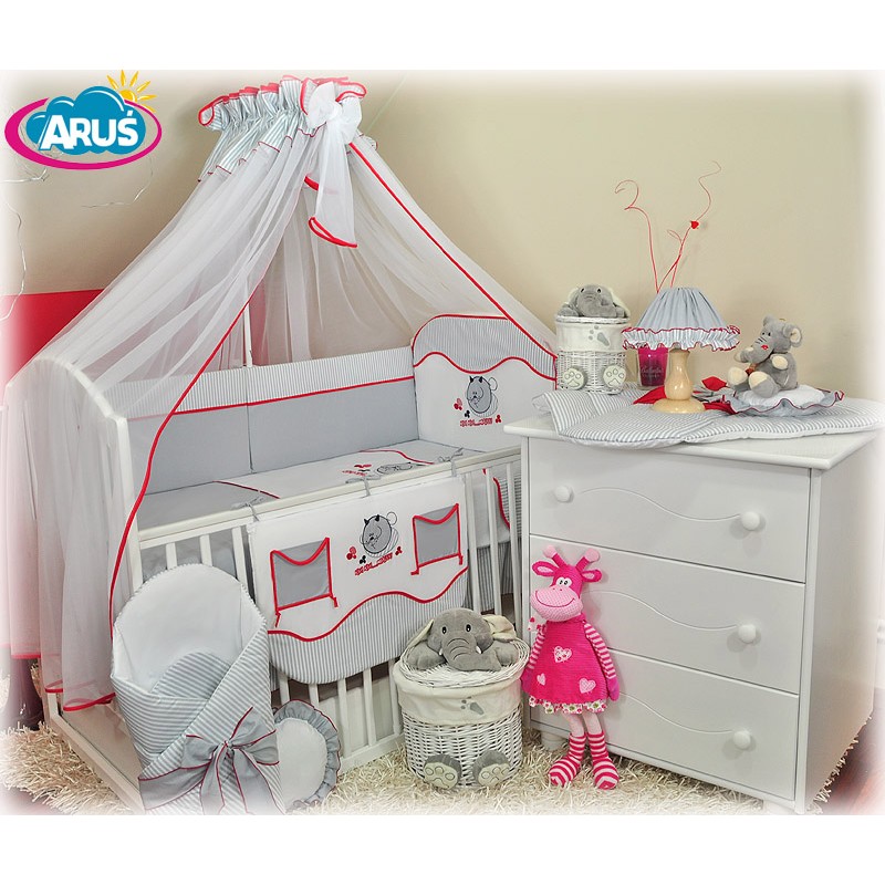 7. Moskitiera z szyfonu 480 x 160 cm - zasłania całe łóżeczko zabezpieczając malucha przed różnymi owadami przy tym pięknie się prezentuje. Odpowiednia długość i szerokość zabezpiecza całe łóżeczko. Może być zakładana na długim i krótkim boku, Wykonana z delikatnego szyfonu wykończony dobraną kolorystycznie lamówką . Górę moskitiery zdobi dodatkowa warstwa tkaniny bawełnianej z takiej samej tkaniny jak pościel oraz kokardka wykonana również z szyfonu.