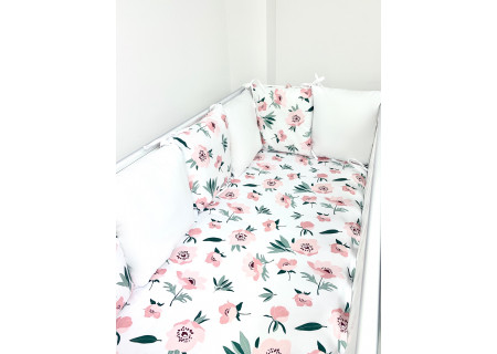 10 el.Pościel do łóżeczka 120x90 modułowa kolekcja Summer poppies white