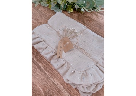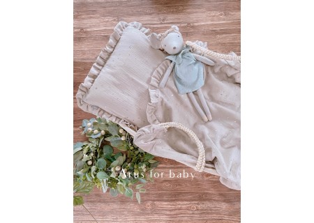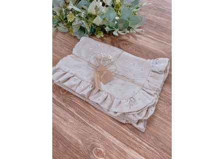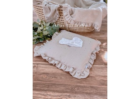 Komplet pościeli muślinowej z nowej kolekcji Premium Eco Muslin w rozmiarze 120x90. Poszewka na poduszkę w rozmiarze 60x40 z trzech stron obszyta falbanką, na jednej ze stron znajduje się kryty zamek. Poszewka na Kołderkę posiada od góry wszytą falbankę.