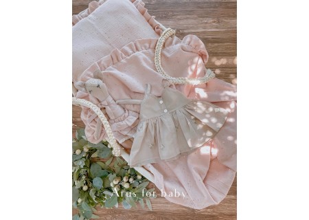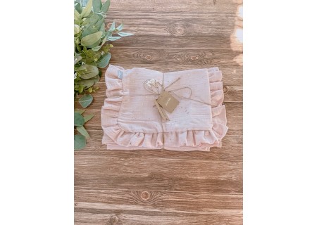 Komplet pościeli muślinowej z nowej kolekcji Premium Eco Muslin w rozmiarze 120x90. Poszewka na poduszkę w rozmiarze 60x40 z trzech stron obszyta falbanką, na jednej ze stron znajduje się kryty zamek. Poszewka na Kołderkę posiada od góry wszytą falbankę.