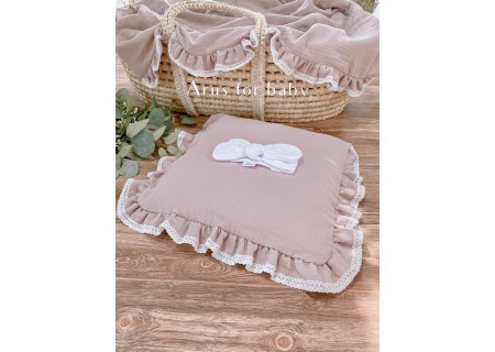 Komplet pościeli muślinowej z nowej kolekcji Premium Eco Muslin w rozmiarze 120x90. Poszewka na poduszkę w rozmiarze 60x40 z trzech stron obszyta falbanką z bawełnianą koronką, na jednej ze stron znajduje się kryty zamek. Poszewka na Kołderkę posiada od góry wszytą falbankę z koronkowym wykończeniem.