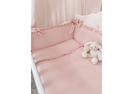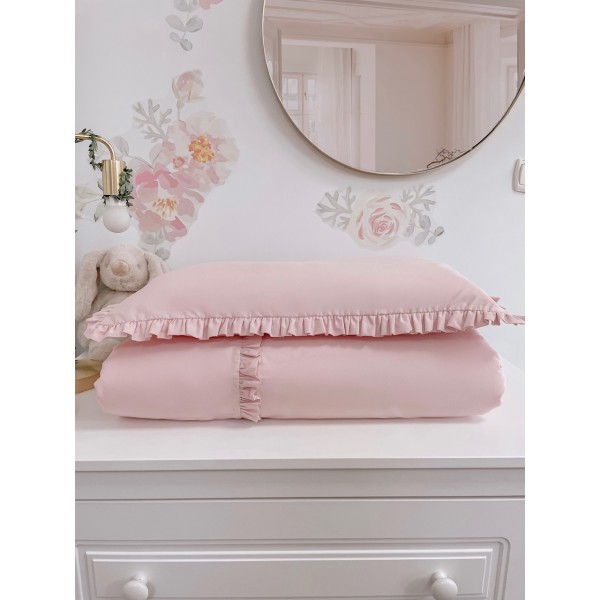 Pościel dziecięca z kolekcji „AMELIA” wykona z bawełny w jednolitym kolorze, dodatek stanowi falbanka. Poszewka kołderki z wszyta falbanką nadaje jej niezwykłej prostoty z zarazem klasy . Poszewka poduszki obszyta falbanką z trzech stron tak aby nie uwierała małej główki, zapinana na suwaczek Całość wykonana atestowanej bawełny najwyższej jakości . Polska produkcja firmy ARUŚ.