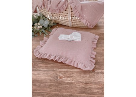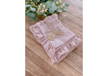Komplet pościeli muślinowej z nowej kolekcji Premium Eco Muslin w rozmiarze 120x90. Poszewka na poduszkę w rozmiarze 60x40 z trzech stron obszyta falbanką, na jednej ze stron znajduje się kryty zamek. Poszewka na Kołderkę posiada od góry wszytą falbankę.Dodatkowa poszewka na poduszkę 40x40.