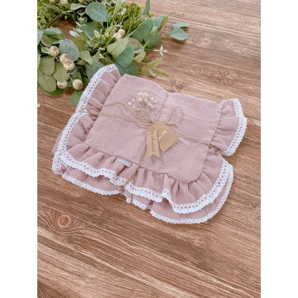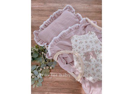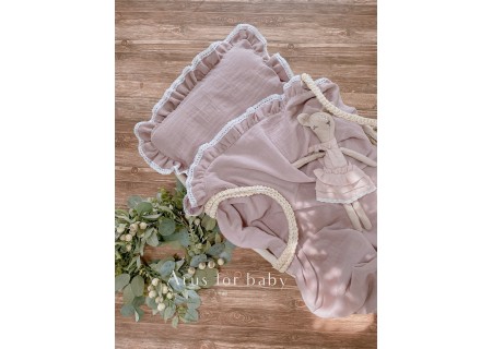 Komplet pościeli muślinowej z nowej kolekcji Premium Eco Muslin w rozmiarze 120x90. Poszewka na poduszkę w rozmiarze 60x40 z trzech stron obszyta falbanką, na jednej ze stron znajduje się kryty zamek. Poszewka na Kołderkę posiada od góry wszytą falbankę.Dodatkowa poszewka na poduszkę 40x40.