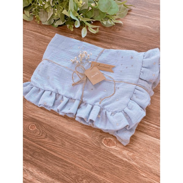 Komplet pościeli muślinowej z nowej kolekcji Premium Eco Muslin w rozmiarze 120x90. Poszewka na poduszkę w rozmiarze 60x40 z trzech stron obszyta falbanką, na jednej ze stron znajduje się kryty zamek. Poszewka na Kołderkę posiada od góry wszytą falbankę.Dodatkowa poszewka na poduszkę 40x40.
