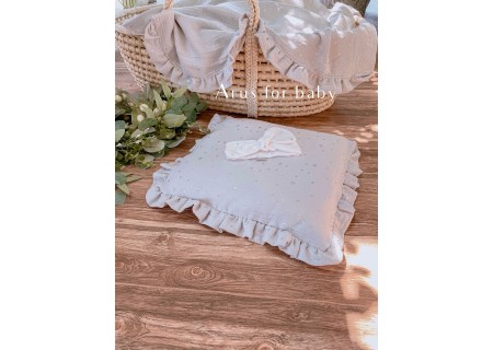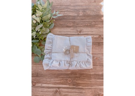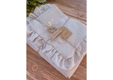 Komplet pościeli muślinowej z nowej kolekcji Premium Eco Muslin w rozmiarze 120x90. Poszewka na poduszkę w rozmiarze 60x40 z trzech stron obszyta falbanką, na jednej ze stron znajduje się kryty zamek. Poszewka na Kołderkę posiada od góry wszytą falbankę.Dodatkowa poszewka na poduszkę 40x40.