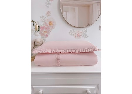 2. Poszewkę na poduszkę 60 x 40 cm – została wyposażona w bezpieczny plastikowy suwaczek, Wykonana z najwyższej jakości atestowanej gładkiej bawełny. Poszewka dwustronna gładka, obszyta z trzech stron falbanką aby nie uwierała główki