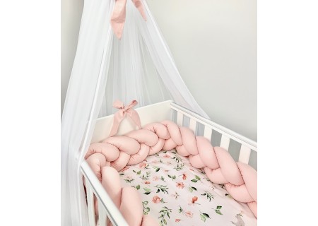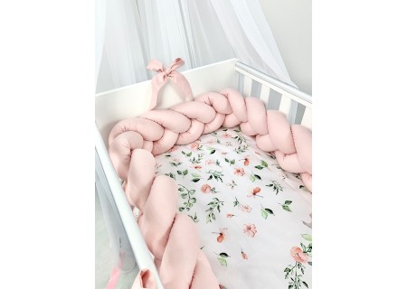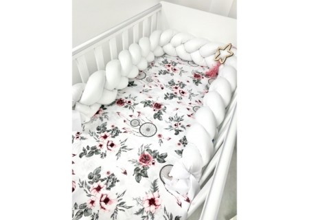 Ochraniacz można wykorzystać jako spleciony warkocz lub też każdy z elementów warkocza można przepleść między szczebelkami łóżeczka