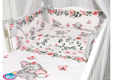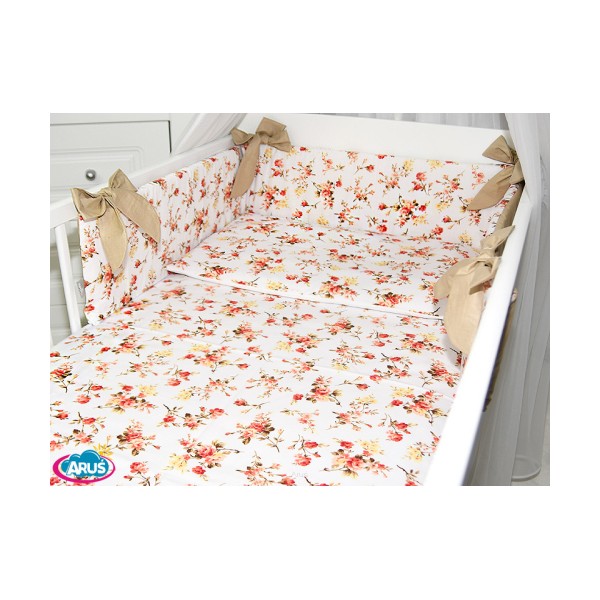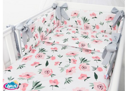 3 el.Pościel do łóżeczka 120x90 dwustronna "KOKARDKA" (dzika róża +bez)
