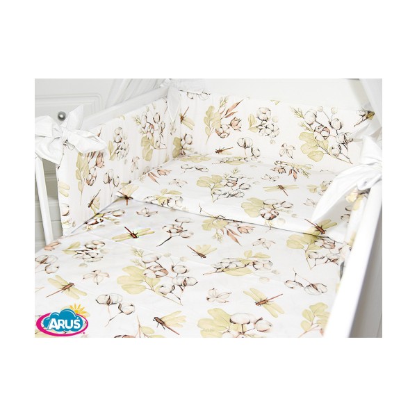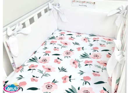 3 el.Pościel do łóżeczka 120x90 dwustronna "KOKARDKA" (kwiat bawełny +biały)