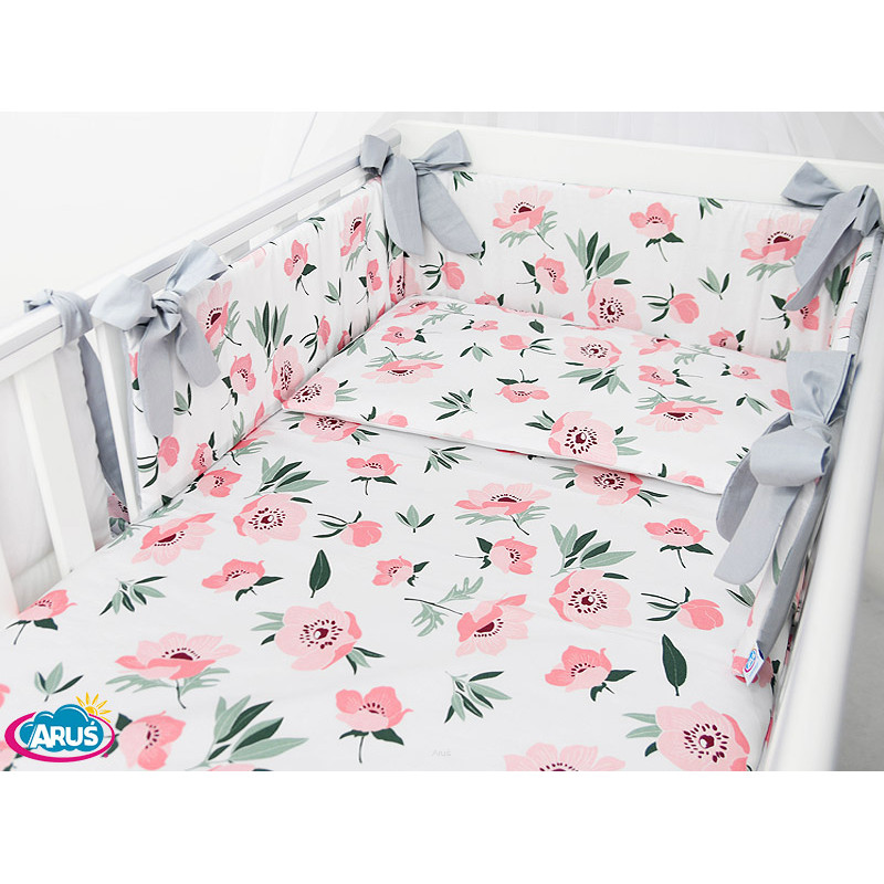 3 el.Pościel do łóżeczka 120x90 dwustronna "Summer" poppies grey
