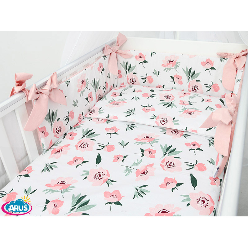 3 el.Pościel do łóżeczka 120x90 dwustronna "Summer" poppies rose