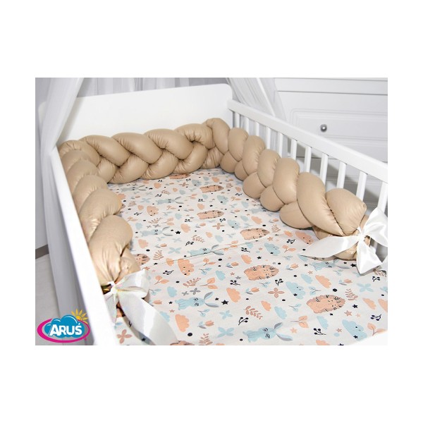 3 el.Pościel do łóżeczka 120x90 "Nature&Flowers" (jeżyki beżowe +beżowy warkocz)