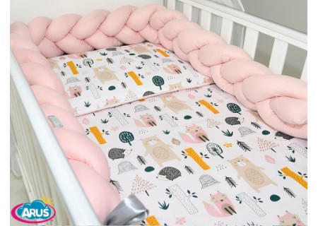 3 el.Pościel do łóżeczka 120x90 "Nature&Flowers" (różowe gąski +popielaty warkocz)