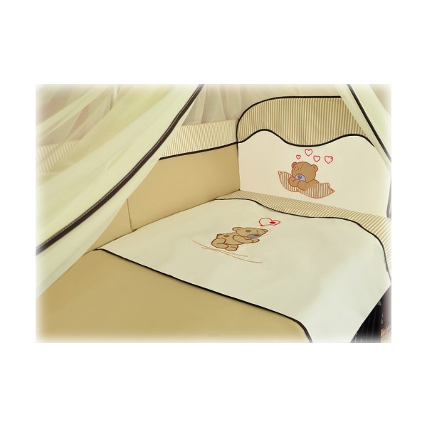 4 el.Pościel do łóżeczka 120x90 "PASKI" (beżowy miś balonik)