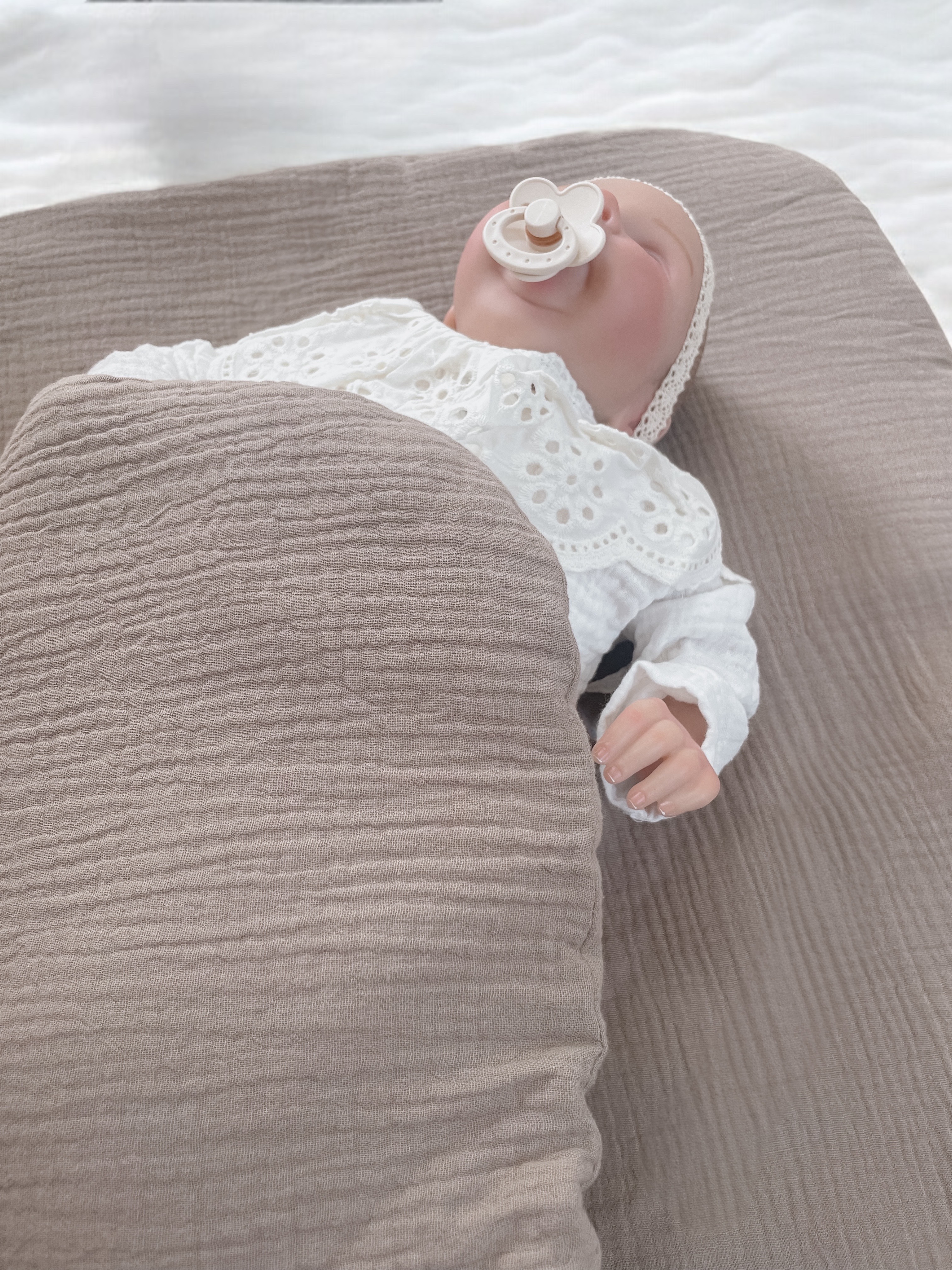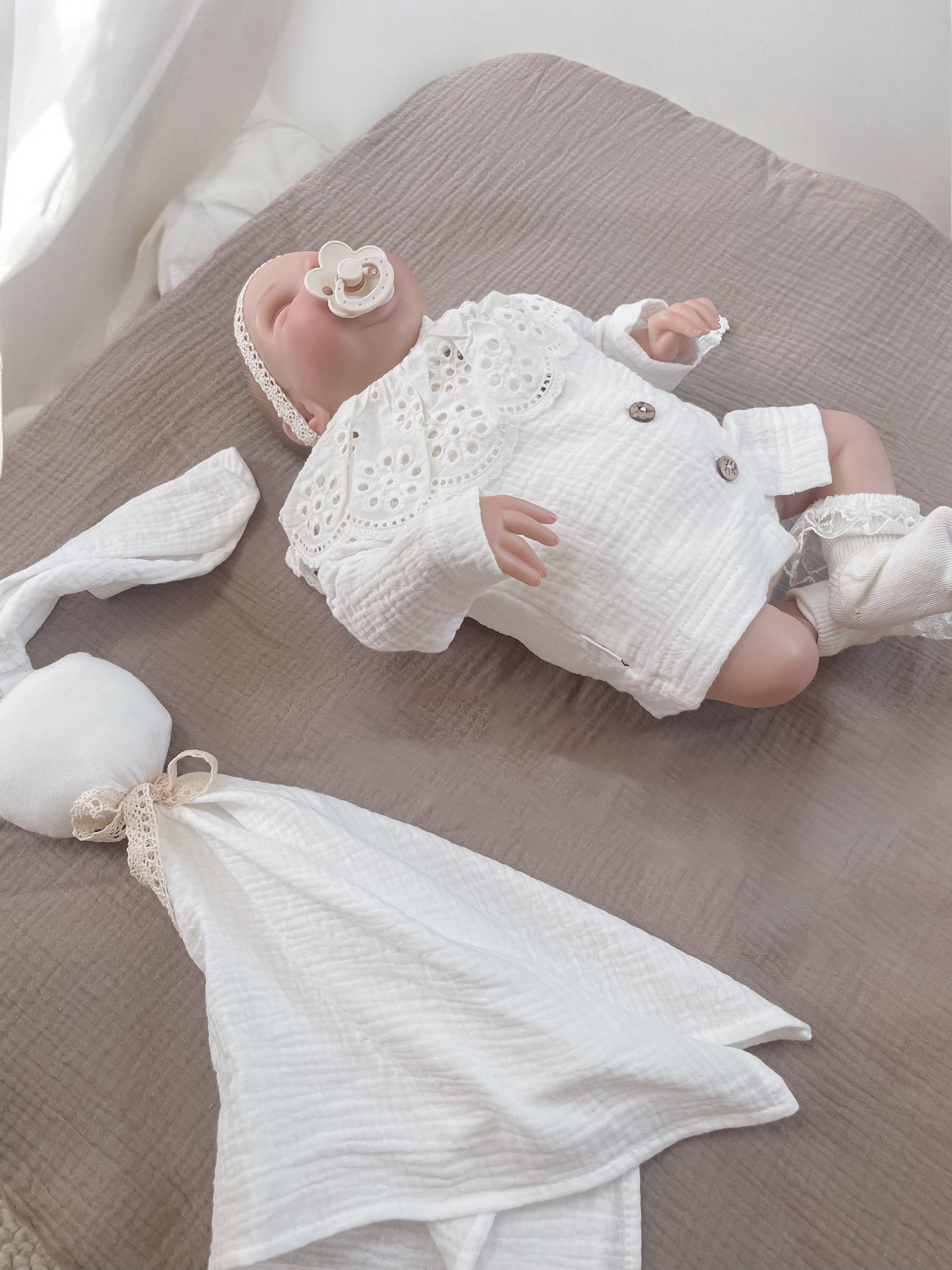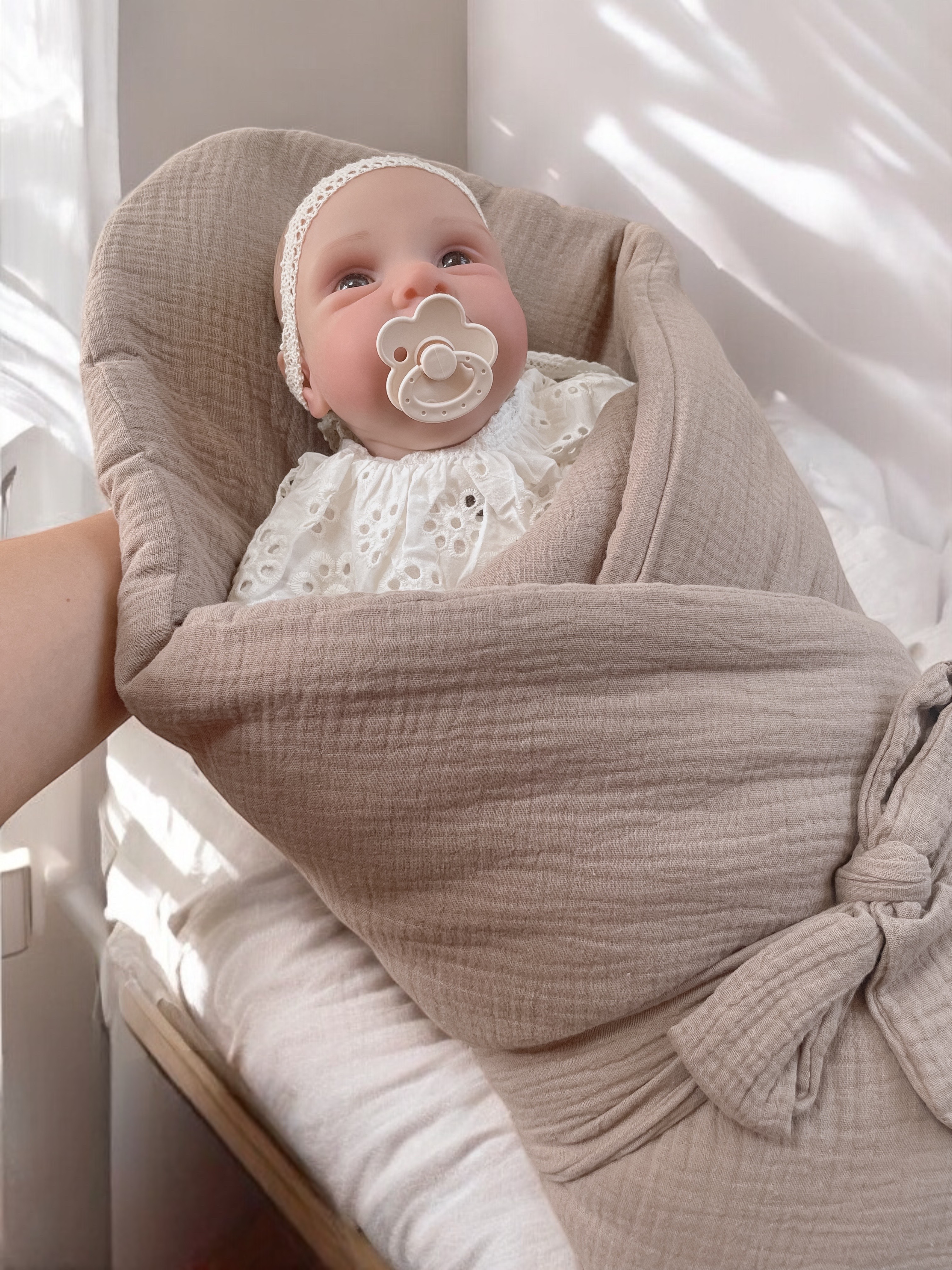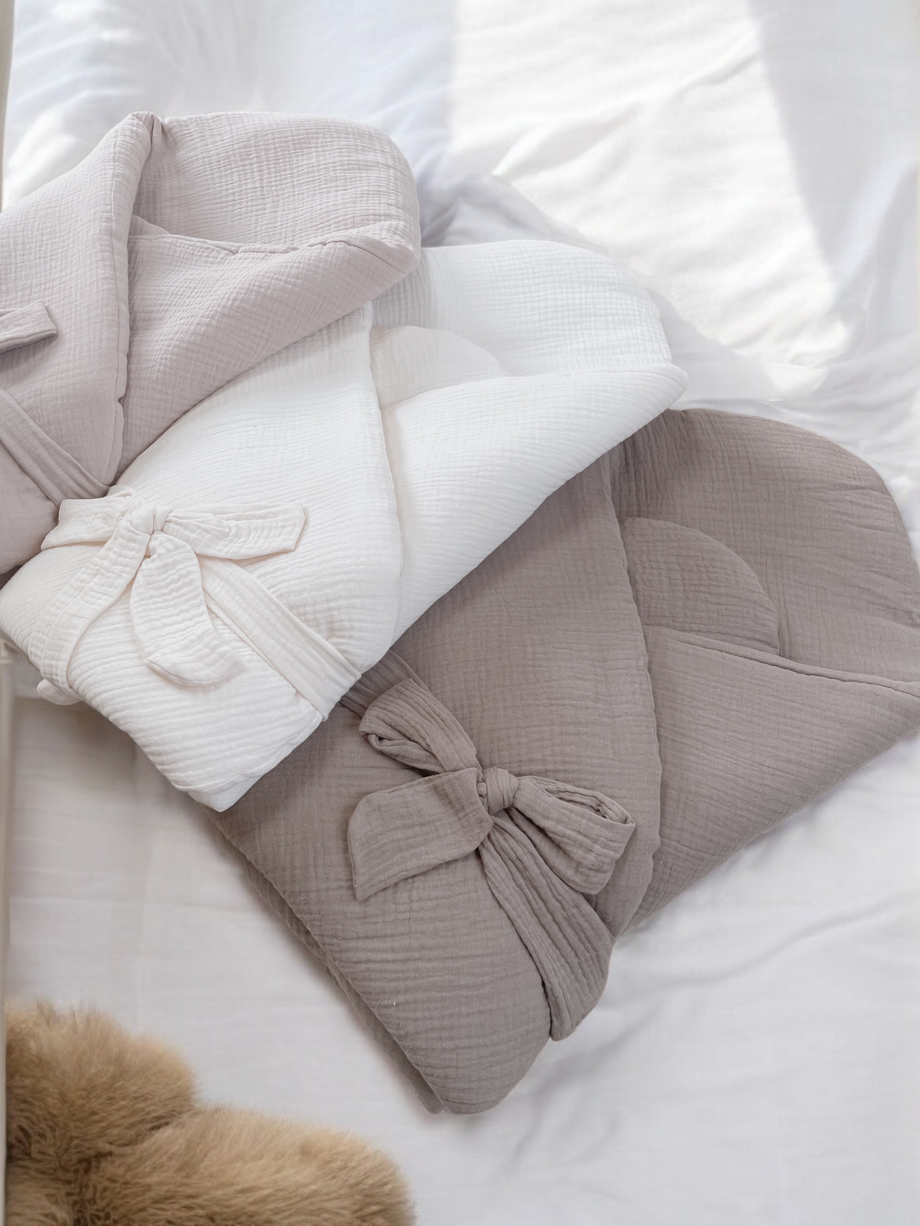 Miękki i delikatny w swojej strukturze muślin sprawi, że maluszek poczuje się bezpiecznie i komfortowo.