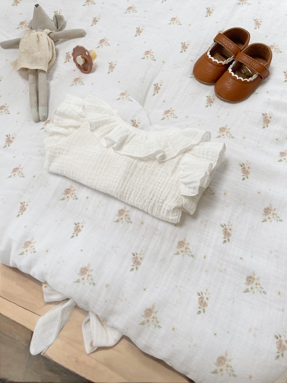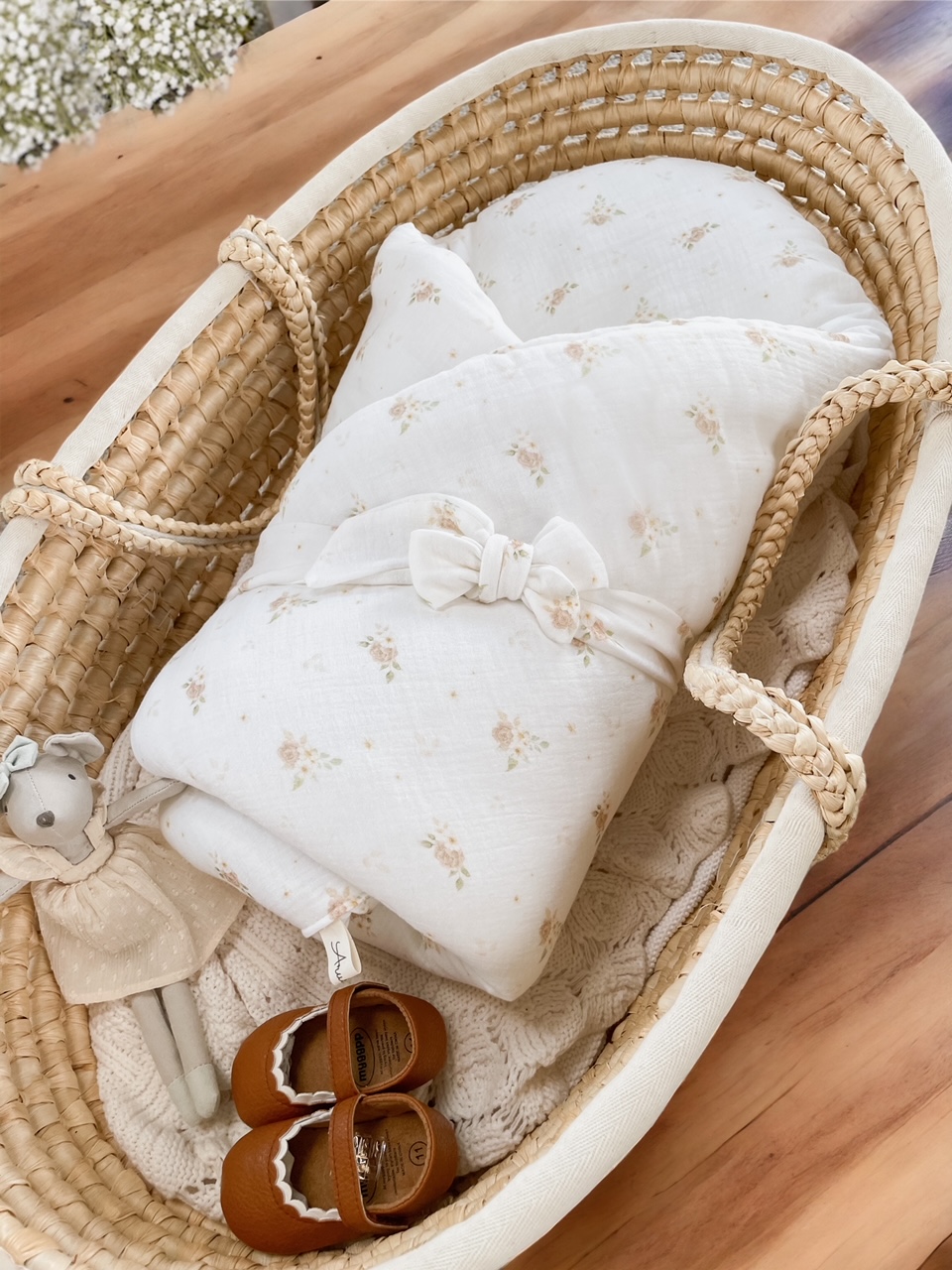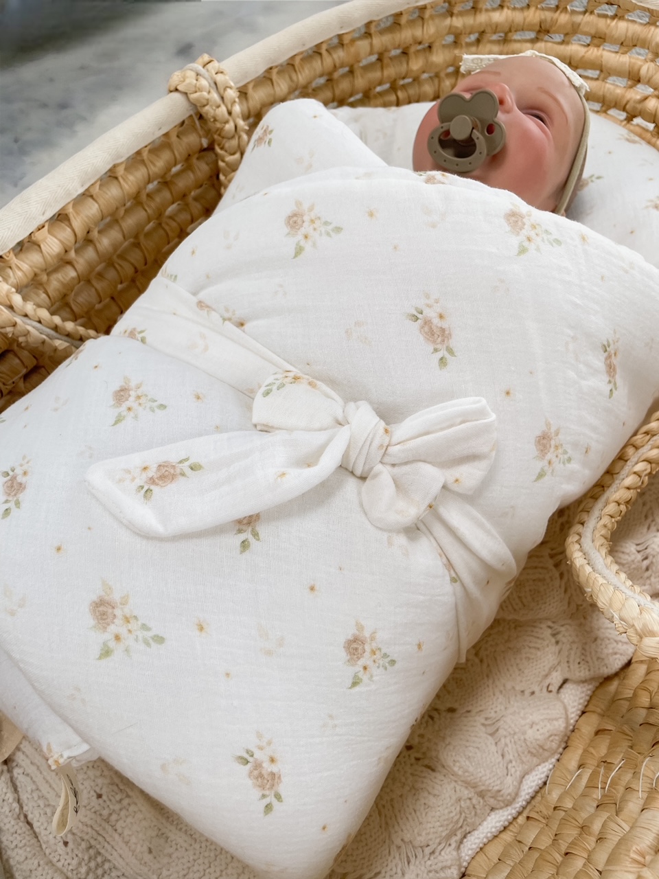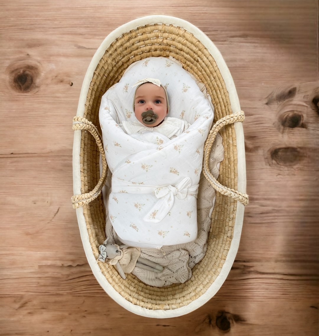 Miękki i delikatny w swojej strukturze muślin sprawi, że maluszek poczuje się bezpiecznie i komfortowo.