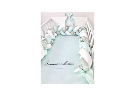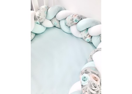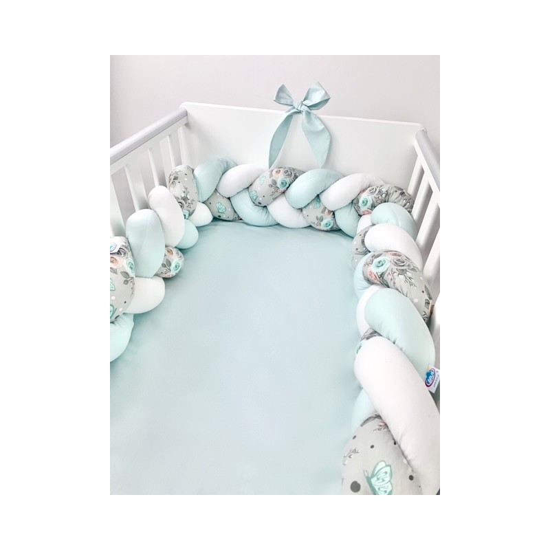 Ochraniacz można wykorzystać jako spleciony warkocz lub też każdy z elementów warkocza można przepleść między szczebelkami łóżeczka