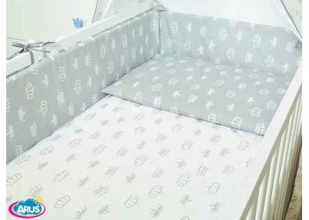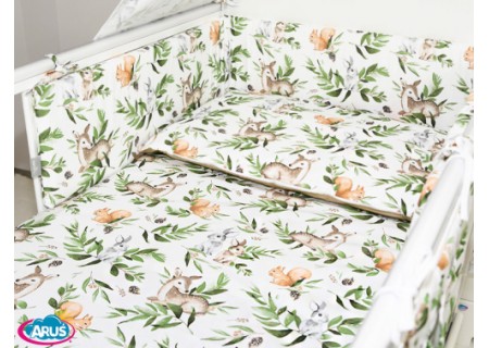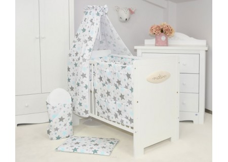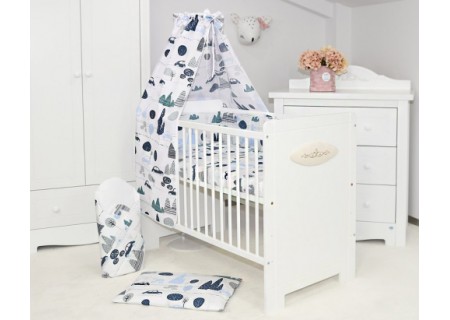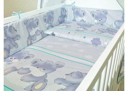 3. Ochraniacz na szczebelki 180 x 20 cm – sztywny i gruby ochraniacz wykonany z prasowanej wlokniny , która zapewnia bardzo skuteczną ochronę przed uderzeniami główni dziecka o szczebelki. Ochraniacz mocowany jest na troczki, które wykonane są z tej samej tkaniny, która posłużyła do szycia pościeli. Ochraniacz jest dwustronny moze byc wiec zakladany wg wlasnego uznania