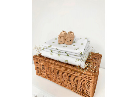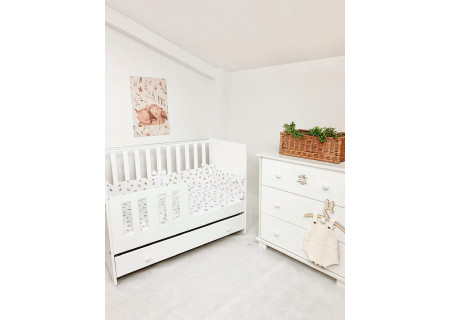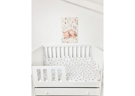 5 el.Pościel do łóżeczka 120x90 dwustronna Boho leafs +white