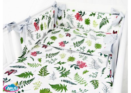 3. Ochraniacz na szczebelki 180 x 20 cm – sztywny i gruby ochraniacz wykonany z prasowanej wlokniny , która zapewnia bardzo skuteczną ochronę przed uderzeniami główni dziecka o szczebelki. Ochraniacz mocowany jest dużymi kokardkami, które wykonane są z tej samej tkaniny, która posłużyła do szycia pościeli. Ochraniacz jest dwustronny moze byc wiec zakladany wg wlasnego uznania