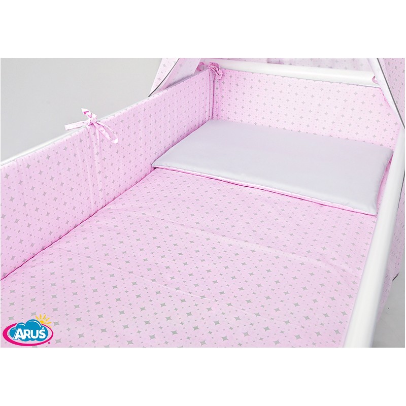 5 el.Pościel do łóżeczka 120x90 "DWUSTRONNA" różowe romby + popiel gładki