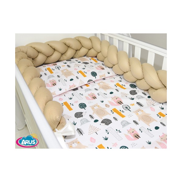 5 el.Pościel do łóżeczka 120x90 "Nature&Flowers" (niedźwiadki +beżowy warkocz)