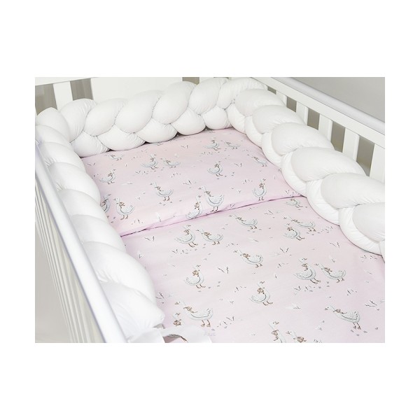 5 el.Pościel do łóżeczka 120x90 "Nature&Flowers" (różowe gąski +biały warkocz)