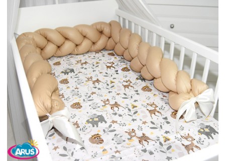 3. Ochraniacz / warkocz / gniazdko / kojec Zapewnia bezpieczny spokojny sen każdego maluszka, zabezpiecza go przed uderzeniami o szczebelki łóżeczka. Ochraniacz można wykorzystać jako spleciony warkocz  lub też każdy z elementów warkocza można przepleść między szczebelkami łóżeczka.Ochraniacz może zabezpieczyć krótkie boki łóżeczka oraz długi bok , jak również można go umieści za głową dziecka + po prawej i lewej stronie . Może być wykorzystywany jako gniazdko do zabawy, zawiązany kokardkami dodającymi uroku całości. Starannie wykonany zapewnia długotrwałe użytkowanie. Jednolity kolor sprawia że ochraniacz -warkocz bedzie uniwersalny do wielu wzorów.