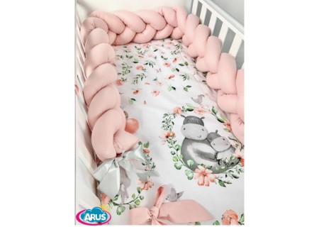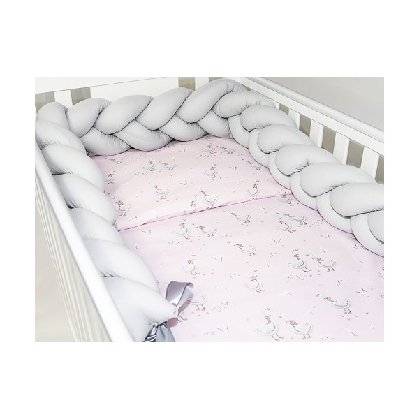 5 el.Pościel do łóżeczka 120x90 "Nature&Flowers" (różowe gąski +popielaty warkocz)