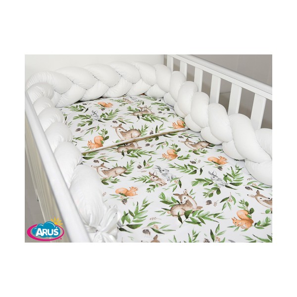 5 el.Pościel do łóżeczka 120x90 "Nature&Flowers" (ruda wiewiórka +biały warkocz)