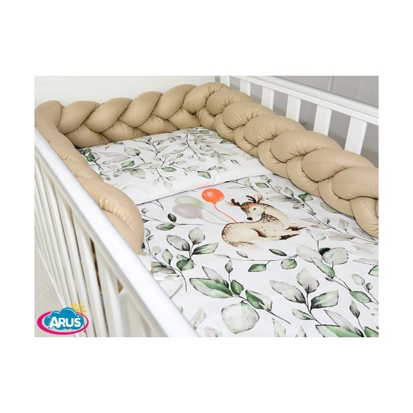 5 el.Pościel do łóżeczka 120x90 "Nature&Flowers" (sarenka zielona +beżowy warkocz)