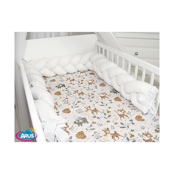 5 el.Pościel do łóżeczka 120x90 "Nature&Flowers" (zwierzaki leśne beżowe +biały warkocz)