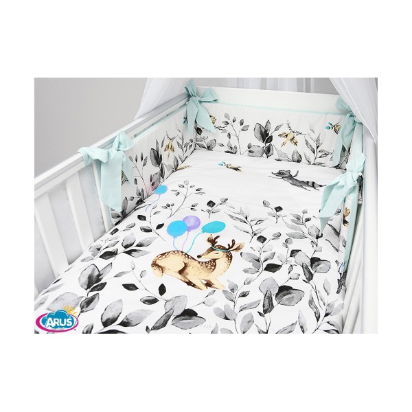 7 el.Pościel do łóżeczka 120x90 dwustronna "KOKARDKA" (sarenka popielata +mięta)