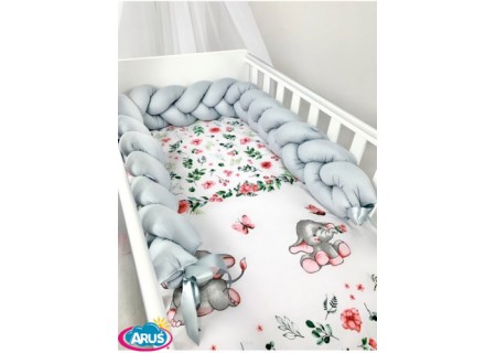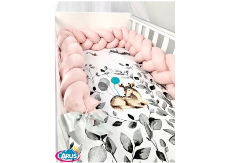 Śliczna pościel dziecięca 7-elementowa  z kolekcji  NATURE & FLOWERS z ciekawym zestawieniem bawełny we wzorze oraz dodatkowo dobranym kolorystycznie  jednobarwnym plecionym warkoczem / ochraniaczem .Całość sprawia że pościel nabiera nowoczesności i indywidualności.   Unikatowe wzornictwo, atestowana bawełna najwyższej jakości oraz polska produkcja od firmy ARUŚ! Do wyboru różne kolory dla dziewczynek i dla chłopców.