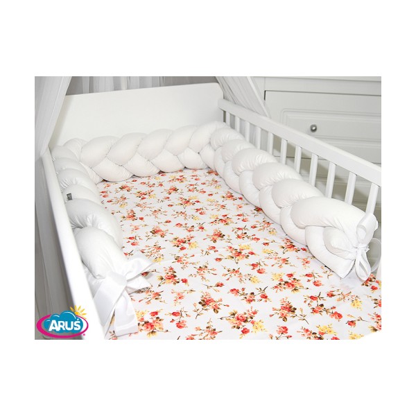 7 el.Pościel do łóżeczka 120x90 "Nature&Flowers" (dzika róża +biały warkocz)