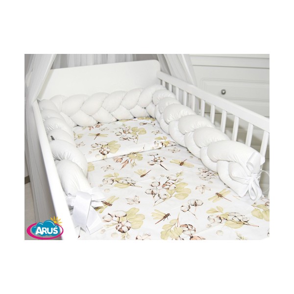 7 el.Pościel do łóżeczka 120x90 "Nature&Flowers" (kwiat bawełny +biały warkocz)