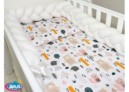 Śliczna pościel dziecięca 7-elementowa  z kolekcji  NATURE & FLOWERS z ciekawym zestawieniem bawełny we wzorze oraz dodatkowo dobranym kolorystycznie  jednobarwnym plecionym warkoczem / ochraniaczem .Całość sprawia że pościel nabiera nowoczesności i indywidualności.   Unikatowe wzornictwo, atestowana bawełna najwyższej jakości oraz polska produkcja od firmy ARUŚ! Do wyboru różne kolory dla dziewczynek i dla chłopców.