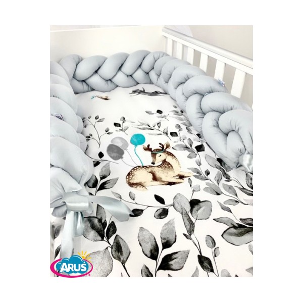 7 el.Pościel do łóżeczka 120x90 "Nature&Flowers" (sarenka popielata+ popielaty warkocz)