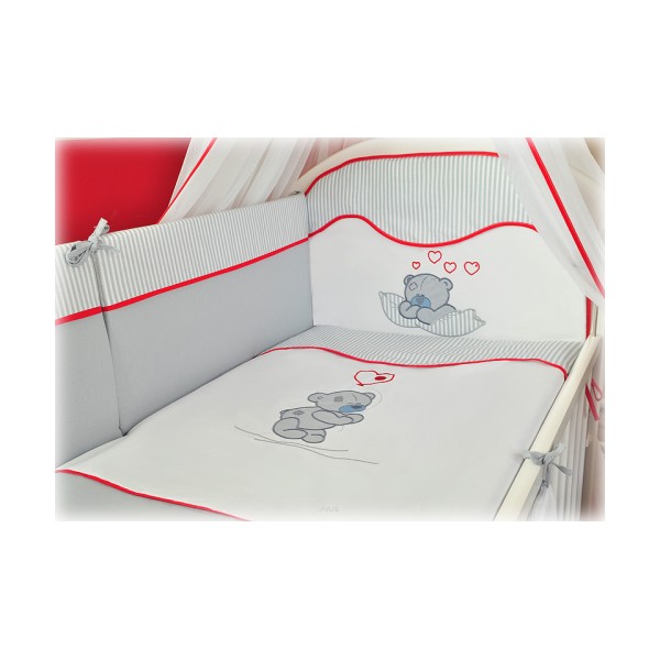 7 el.Pościel do łóżeczka 120x90 "PASKI" (popielaty miś balonik)