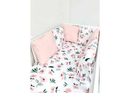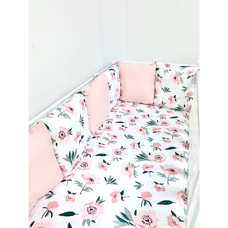 3-8. Ochraniacz modułowy składający się z 6 poduszek – wymiar każdej poduszki to ok 38x35 cm, poduszki uszyte są w dwóch wzorach , po 3szt z każdego wzoru składającego się na zestawienie poszewek. Wypełnienie stanowi mięciutka kulka silikonowa. Poduszki posiadają na każdym z brzegów wszyte troczki umożliwiające przymocowanie ich do łóżeczka w każdym miejscu. Taki model ochraniacz jest bardzo uniwersalny, poduszki zakładamy wg własnych potrzeb jak również wg własnego uznania kolorystycznego. Stanowią bardzo dobre zabezpieczenie dziecka przed uderzeniem o szczebelki łóżeczka. Poszycie stanowu 100% bawełna atestowana, najlepszej jakości dla maksymalnego komfortu snu dziecka.