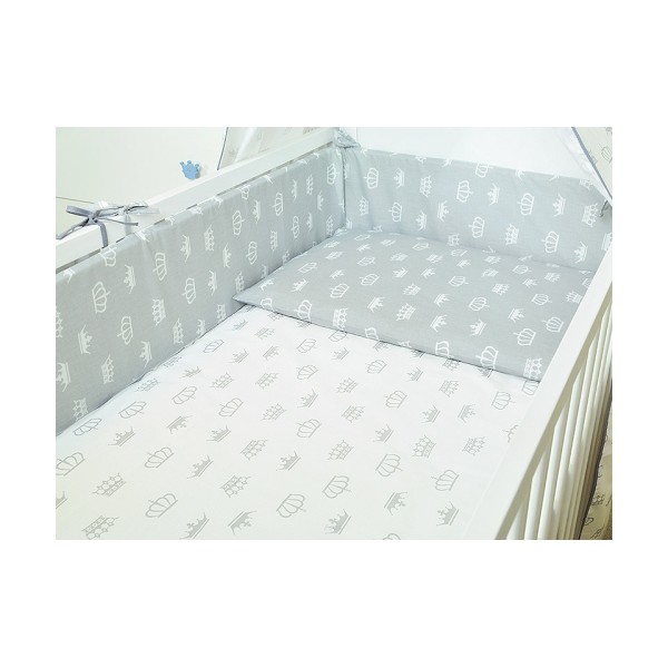ARUŚ 2 el. pościel do łóżeczka 120*90 (123-popielate korony na bialym tle)