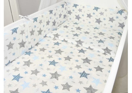 3. Ochraniacz na szczebelki 180 x 20 cm – zapewnia skuteczną ochronę główki dziecka, ponieważ został wykonany ze sztywnej prasowanej włókniny o grubości ok.2 cm. Dzięki swojej sztywności i grubości dobrze zabezpiecza przed uderzeniami o szczebelki. Ochraniacz posiada troczki mocujące do łóżeczka, które zostały uszyte z takiego samego koloru co pościel. Ochraniacz wykonany w systemie EASY WASH, który pozwala na łatwe utrzymanie go w czystości. Pokrowiec ochraniacza wyposażony jest w suwak, aby wyjąć z niego wypełnienie. Pokrowiec można łatwo prać w pralce, a potem wysuszyć i wyprasować, aby cały ochraniacz wyglądał jak nowy.