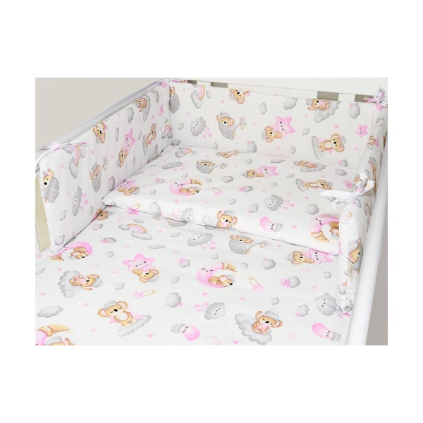 ARUŚ 3 el. pościel do łóżeczka 120*90 (177-różowe misie na chmurce)