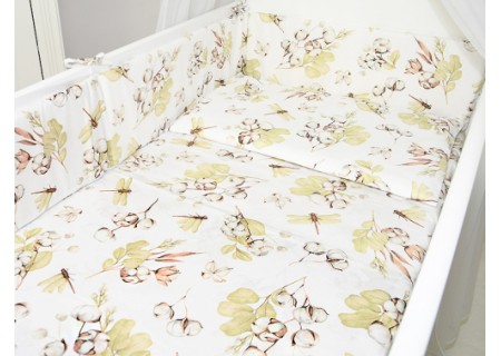 3. Ochraniacz na szczebelki 180 x 20 cm – zapewnia skuteczną ochronę główki dziecka, ponieważ został wykonany ze sztywnej prasowanej włókniny o grubości ok.2 cm. Dzięki swojej sztywności i grubości dobrze zabezpiecza przed uderzeniami o szczebelki. Ochraniacz posiada troczki mocujące do łóżeczka, które zostały uszyte z takiego samego koloru co pościel. Ochraniacz wykonany w systemie EASY WASH, który pozwala na łatwe utrzymanie go w czystości. Pokrowiec ochraniacza wyposażony jest w suwak, aby wyjąć z niego wypełnienie. Pokrowiec można łatwo prać w pralce, a potem wysuszyć i wyprasować, aby cały ochraniacz wyglądał jak nowy.