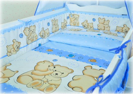 3. Ochraniacz na szczebelki 180 x 20 cm – zapewnia skuteczną ochronę główki dziecka, ponieważ został wykonany ze sztywnej prasowanej włókniny o grubości ok.2 cm. Dzięki swojej sztywności i grubości dobrze zabezpiecza przed uderzeniami o szczebelki. Ochraniacz posiada troczki mocujące do łóżeczka, które zostały uszyte z takiego samego koloru co pościel. Ochraniacz wykonany w systemie EASY WASH, który pozwala na łatwe utrzymanie go w czystości. Pokrowiec ochraniacza wyposażony jest w suwak, aby wyjąć z niego wypełnienie. Pokrowiec można łatwo prać w pralce, a potem wysuszyć i wyprasować, aby cały ochraniacz wyglądał jak nowy.