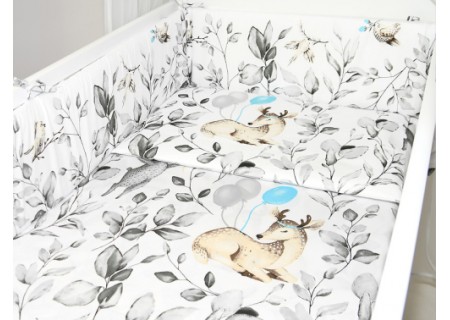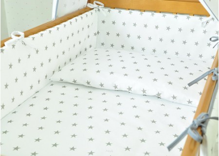 3. Ochraniacz na szczebelki 180 x 20 cm – zapewnia skuteczną ochronę główki dziecka, ponieważ został wykonany ze sztywnej prasowanej włókniny o grubości ok.2 cm. Dzięki swojej sztywności i grubości dobrze zabezpiecza przed uderzeniami o szczebelki. Ochraniacz posiada troczki mocujące do łóżeczka, które zostały uszyte z takiego samego koloru co pościel. Ochraniacz wykonany w systemie EASY WASH, który pozwala na łatwe utrzymanie go w czystości. Pokrowiec ochraniacza wyposażony jest w suwak, aby wyjąć z niego wypełnienie. Pokrowiec można łatwo prać w pralce, a potem wysuszyć i wyprasować, aby cały ochraniacz wyglądał jak nowy.
