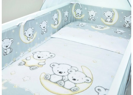 3. Ochraniacz na szczebelki 180 x 20 cm – zapewnia skuteczną ochronę główki dziecka, ponieważ został wykonany ze sztywnej prasowanej włókniny o grubości ok.2 cm. Dzięki swojej sztywności i grubości dobrze zabezpiecza przed uderzeniami o szczebelki. Ochraniacz posiada troczki mocujące do łóżeczka, które zostały uszyte z takiego samego koloru co pościel. Ochraniacz wykonany w systemie EASY WASH, który pozwala na łatwe utrzymanie go w czystości. Pokrowiec ochraniacza wyposażony jest w suwak, aby wyjąć z niego wypełnienie. Pokrowiec można łatwo prać w pralce, a potem wysuszyć i wyprasować, aby cały ochraniacz wyglądał jak nowy.